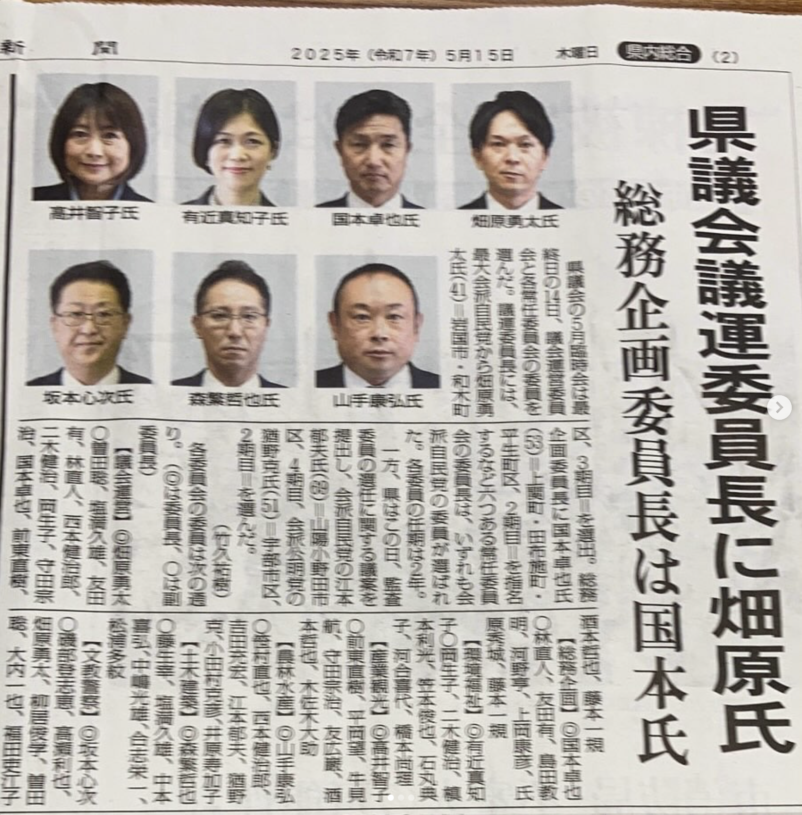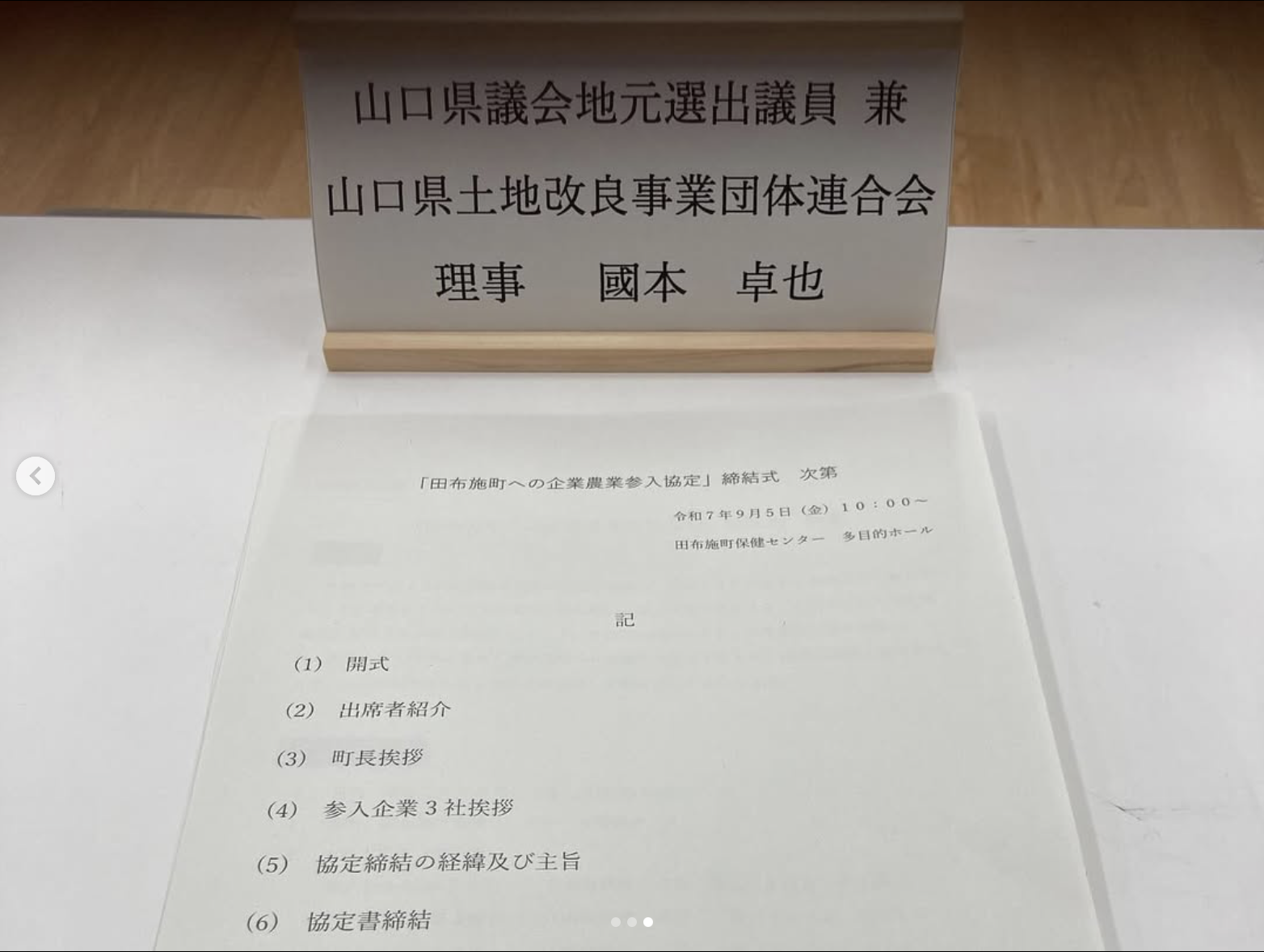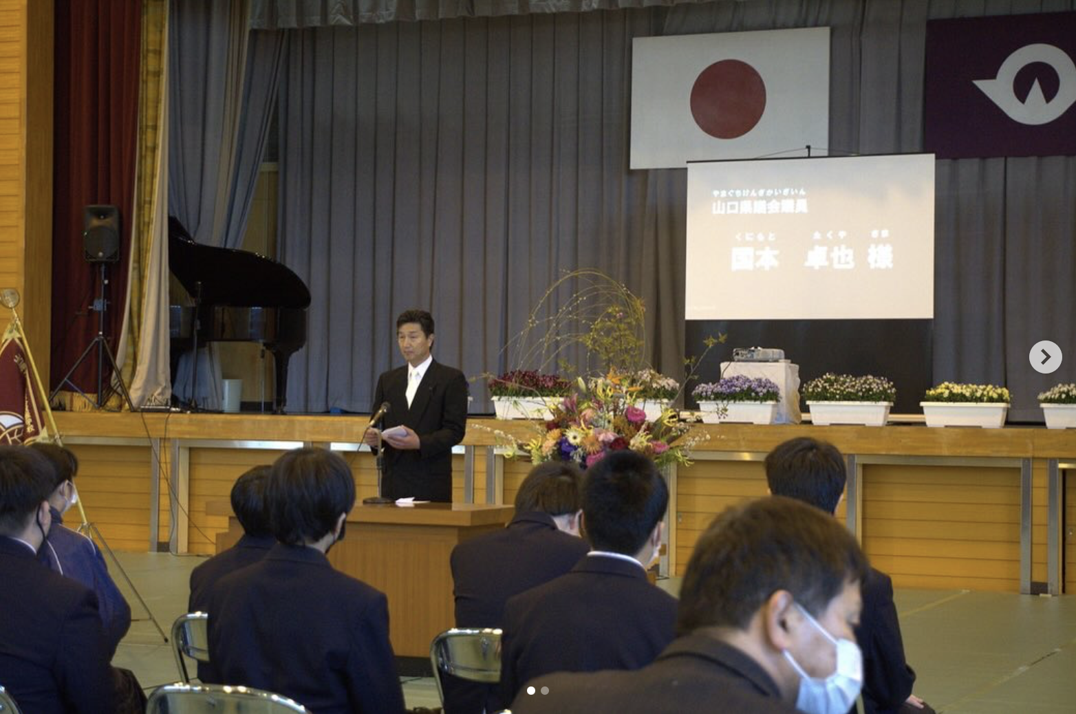 HOME | 活動報告 2025 2024 2023 2022 〜2021 2025 2024 2023 2022 〜2021 2025.11.24 オリーブの会を開催し、皆さんからのご意見をお聞きしました。 2025.11.11 平生町内の各地域交流センターを回り、意見交換をさせて頂きました。 2025.11.3 Yahoo!ニュースで上関町内では一躍有名人になった上関町立上関小中一貫校 かみのせき学苑の職員、カナダ🇨🇦トロント出身のパトリック•ミッチェルさんワールドシリーズの話で盛り上がりました! 2025.11.3 第34回愛ランドフェア×かみのせき學苑祭(上関町) 2025.10.26 第44回麻郷公民館まつり(田布施町) 2025.10.19 第45回城南公民館まつり(田布施町)に参加させていただきました地域の方々の温かさに触れ、活気あふれる雰囲気を肌で感じることができました。 2025.9.14 メルカート・デル・マーレの朝市に行ってきました特産品と美味しい物がたくさん並んでいて、大いに賑わっていました。 2025.9.5 田布施町への「企業農業参入協定書」の締結式に出席しました田布施町内の整備された農地を生かして、民間企業や法人等に町内での農業経営への参入を積極的に促進し、新しい時代にマッチした農業モデルが構築できることを期待します。 2025.8.9 田布施町、城南納涼盆踊り大会・麻郷納涼盆踊り大会に参加しました。 2025.8.5 令和7年度 中国五県消防関係者大会に出席し祝辞を述べさせて頂きました。 2025.5.14 山口県議会5月臨時議会が終了し、総務企画委員長に再任されました。 2025.4.28 平生町漁業協同組合の皆様と意見交換会を行いました。 2025.4.28 この度、ヤングSAダイヤモンズの代表に就任し、今年度の新規入団式を行いました。 2025.4.28 地域の皆様のご意見やご要望を岸信千世先生と一緒にお伺いしました。 2025.4.8 山口県立田布施総合支援学校高等部の入学式に出席しました。 2025.4.6 各地域の「さくら祭り」に参加しました。 2025.3.2 第41回華道家元池坊山口県連合支部花展同級生の 周南支部青年部 伊藤恵子さんに案内していただきました。 2025.3.2 令和6年度貞兼一メモリアルバレーボール大会に出席しました。 2025.3.1 山口県立田布施農工高等学校卒業証書授与式に出席し、祝辞を述べました。 2025.2.14 室津漁協の若手漁師さんと意見交換をしました。 2025.2.13 山口県議会自由民主党会派令清会の勉強会に参加しました。講師は藤本コーポレーション 藤本社長アデリー 小野会長柳井商工バトミントン部 竹光監督 2025.2.3 田布施町予約型定額乗合タクシー「のりーね」出発式に出席しました。 2025.1.25 防災講和「自衛隊の災害派遣活動」を拝聴しました。 2025 2024 2023 2022 〜2021 2025 2024 2023 2022 〜2021